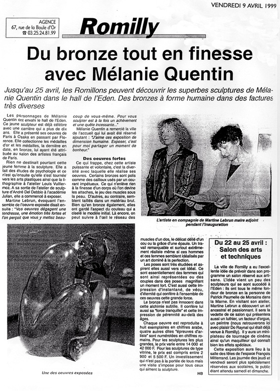 Mélanie Quentin - sculpteur : L'EST REPUBLICAIN - AVRIL 1999